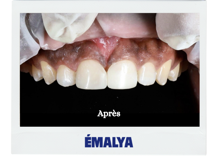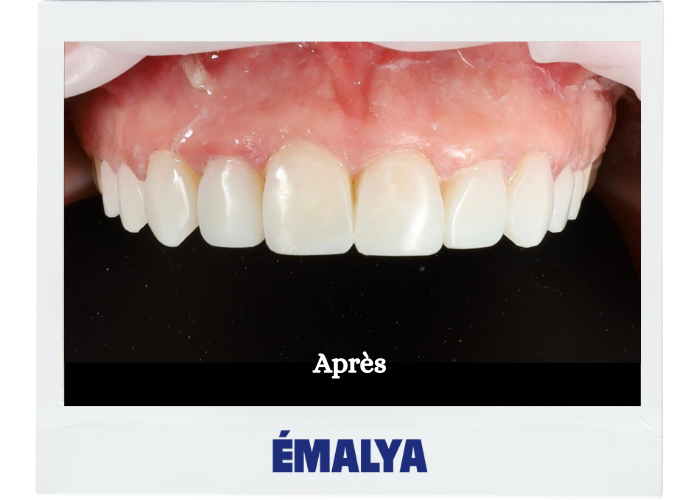 Résultat obtenu en une seule séance, sans douleur et sans préparation des dents naturelles.